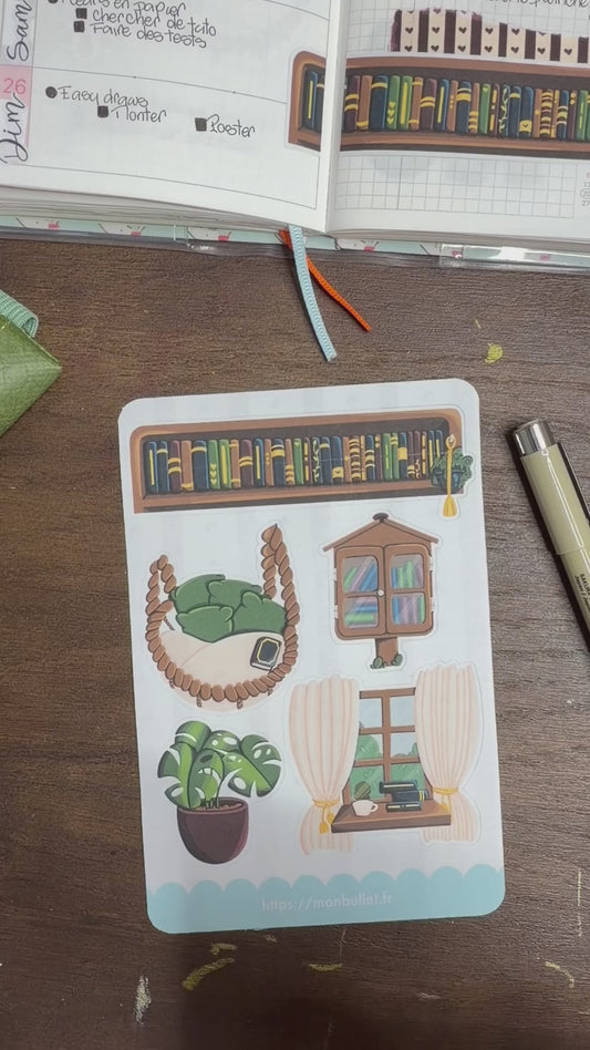 Feuille d’autocollants / stickers mat « Cosy & books » ( bullet ,journaling , déco , scrap , …etc)