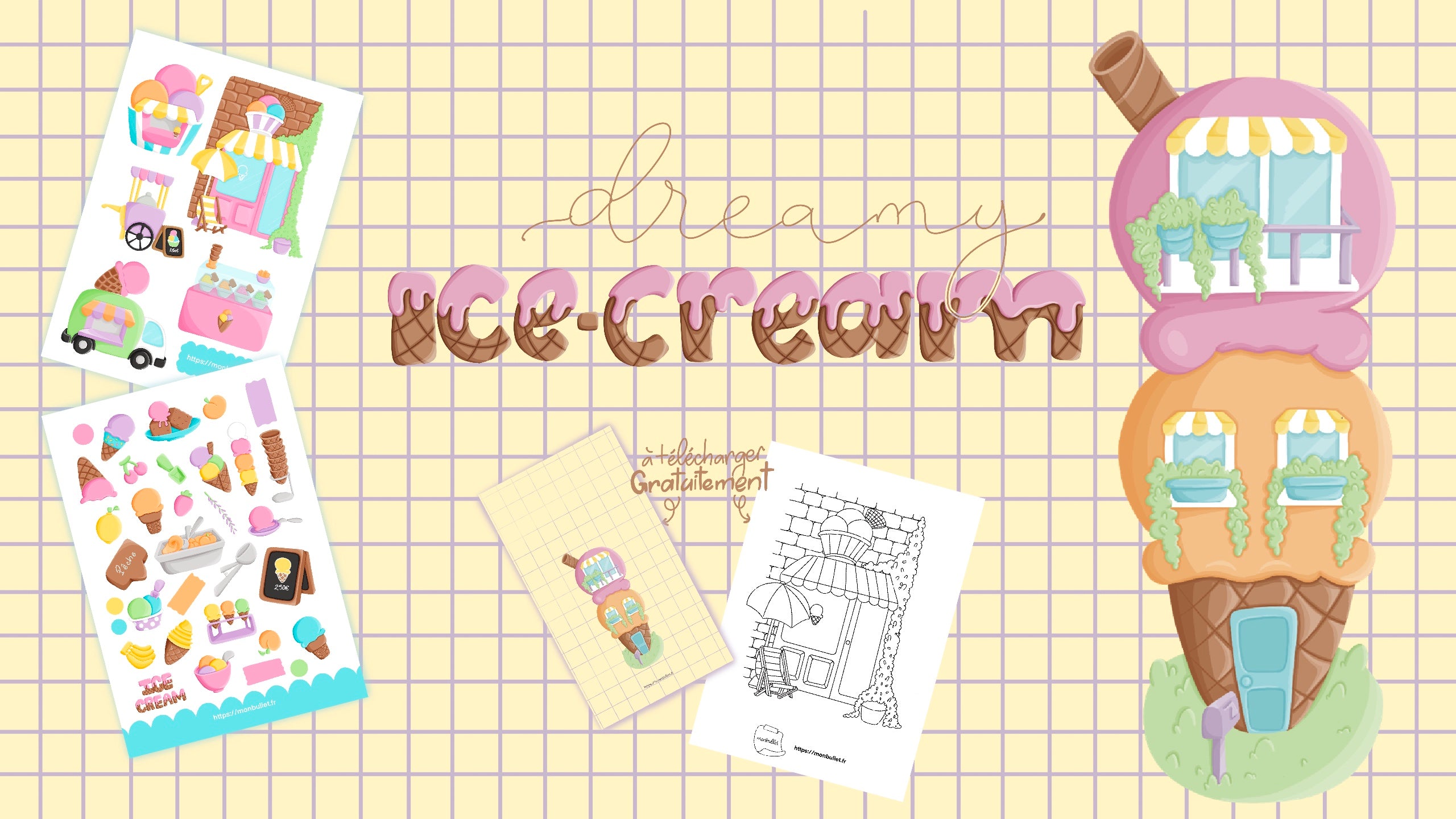 Kit d’autocollants « Dreamy ice cream » pour faire un mois de bullet rapidement( bullet ,journaling , déco , scrap , …etc)