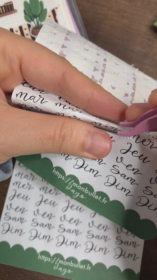 Feuille d’autocollants / stickers mat jours « Cosy and books » ( bullet ,journaling , déco , scrap , …etc)