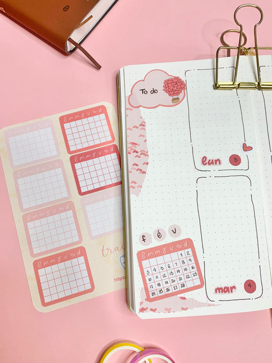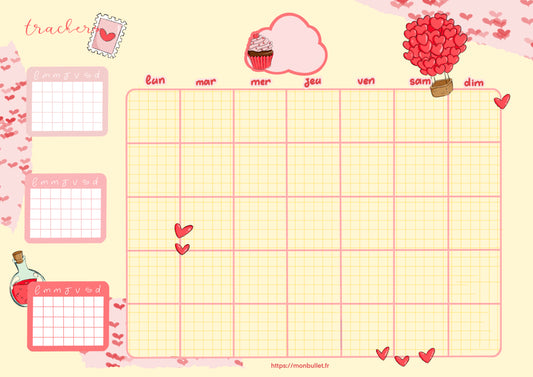 Calendrier non daté mat « Valentine’s day» ( bullet ,journaling , déco , scrap , …etc)