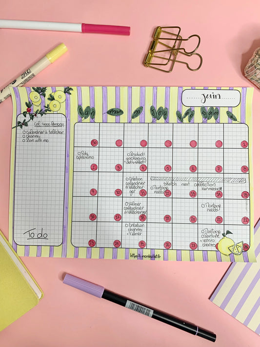 Calendrier non daté mat « It’s marshy hot » ( bullet ,journaling , déco , scrap , …etc)