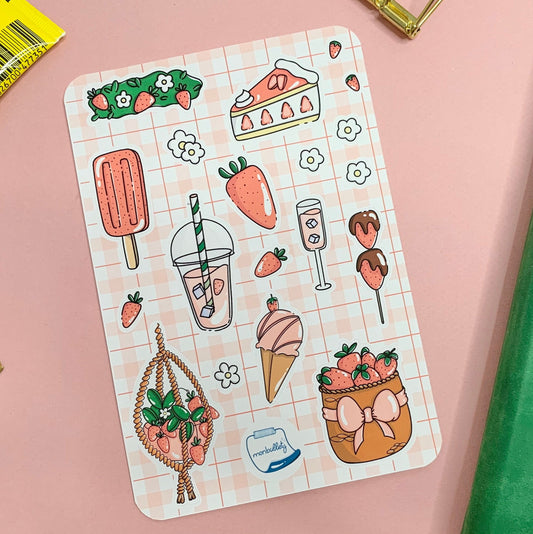 Feuille d’autocollants / stickers mat fraises ( bullet ,journaling , déco , scrap , …etc)