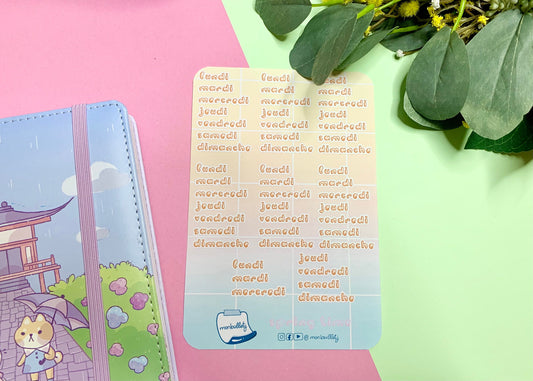 Feuille d’autocollants / stickers jours de la semaine français mat ( bullet ,journaling , déco , scrap , planner, agenda, …etc)