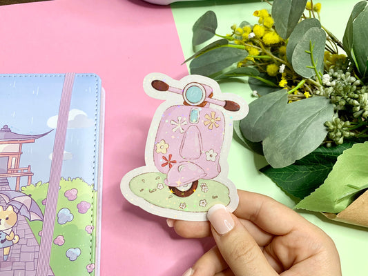 Die-cut / Autocollants stickers holographique scooter à fleurs ( bullet ,journaling , déco , scrap , …etc)
