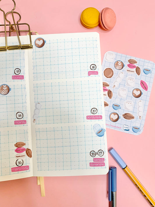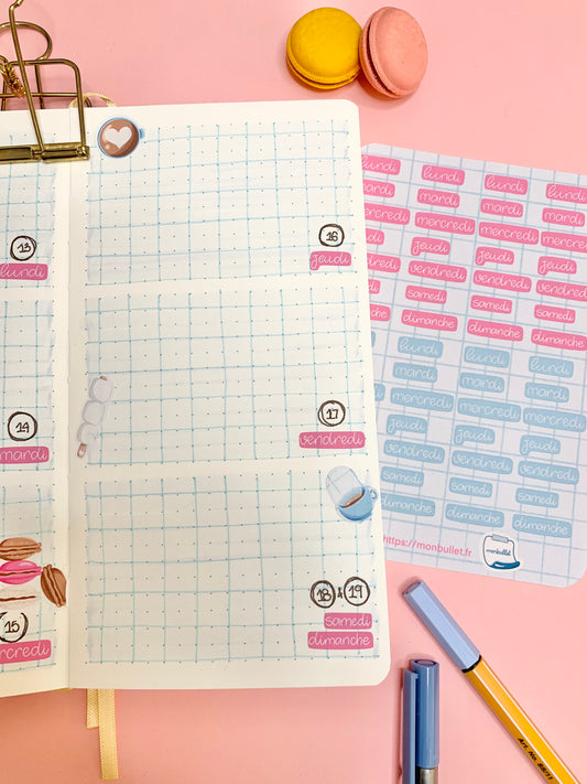 Feuille d’autocollants / stickers mat jours de la semaine « It’s marshy hot » ( bullet ,journaling , déco , scrap , …etc)