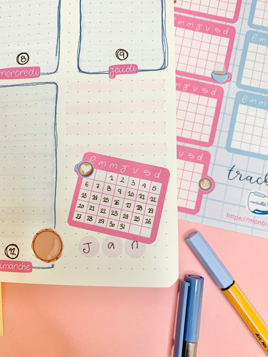 Calendrier non daté mat « It’s marshy hot » ( bullet ,journaling , déco , scrap , …etc)