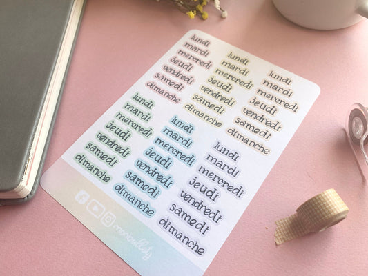 Feuille d’autocollants / stickers jours de la semaine