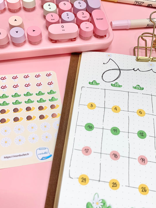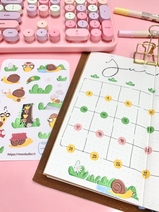 Feuille d’autocollants / stickers slowly snail( bullet ,journaling , déco , scrap , …etc)