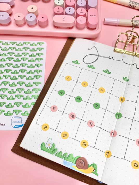 Feuille d’autocollants / stickers lettres slowly snail( bullet ,journaling , déco , scrap , …etc)
