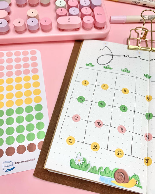 Feuille d’autocollants / stickers ronds slowly snail( bullet ,journaling , déco , scrap , …etc)