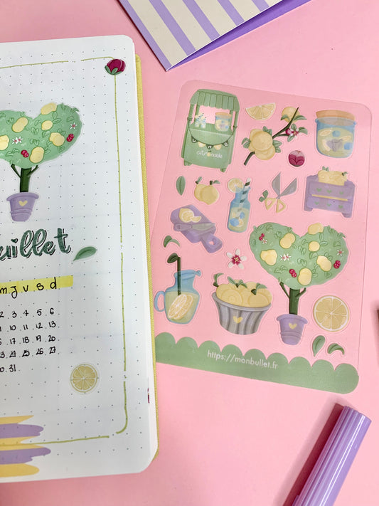 Feuille d’autocollants / stickers mat « Sooo lemony » ( bullet ,journaling , déco , scrap , …etc)