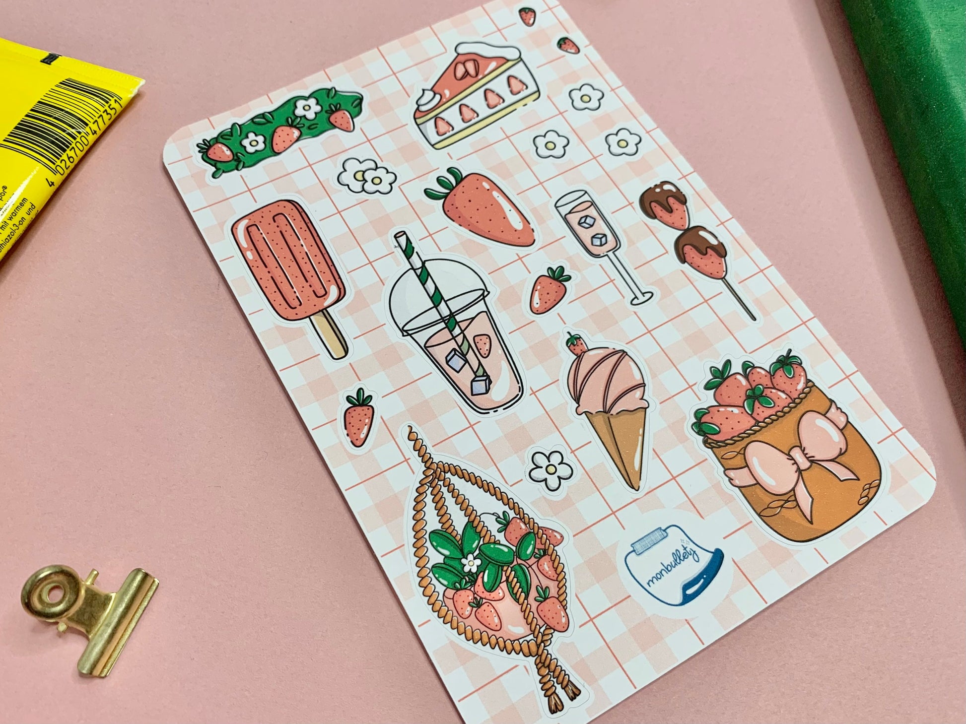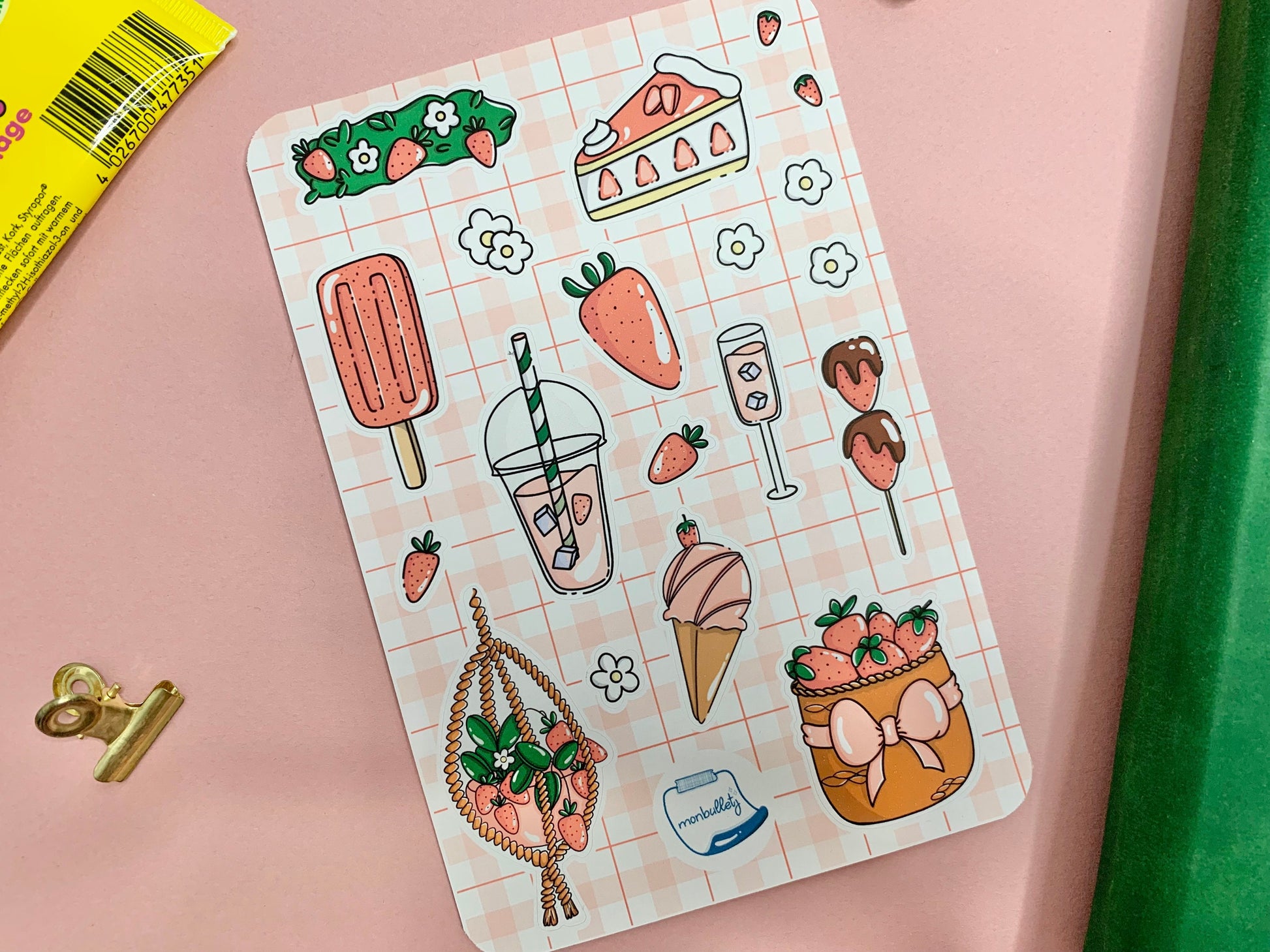 Feuille d’autocollants / stickers mat fraises ( bullet ,journaling , déco , scrap , …etc)