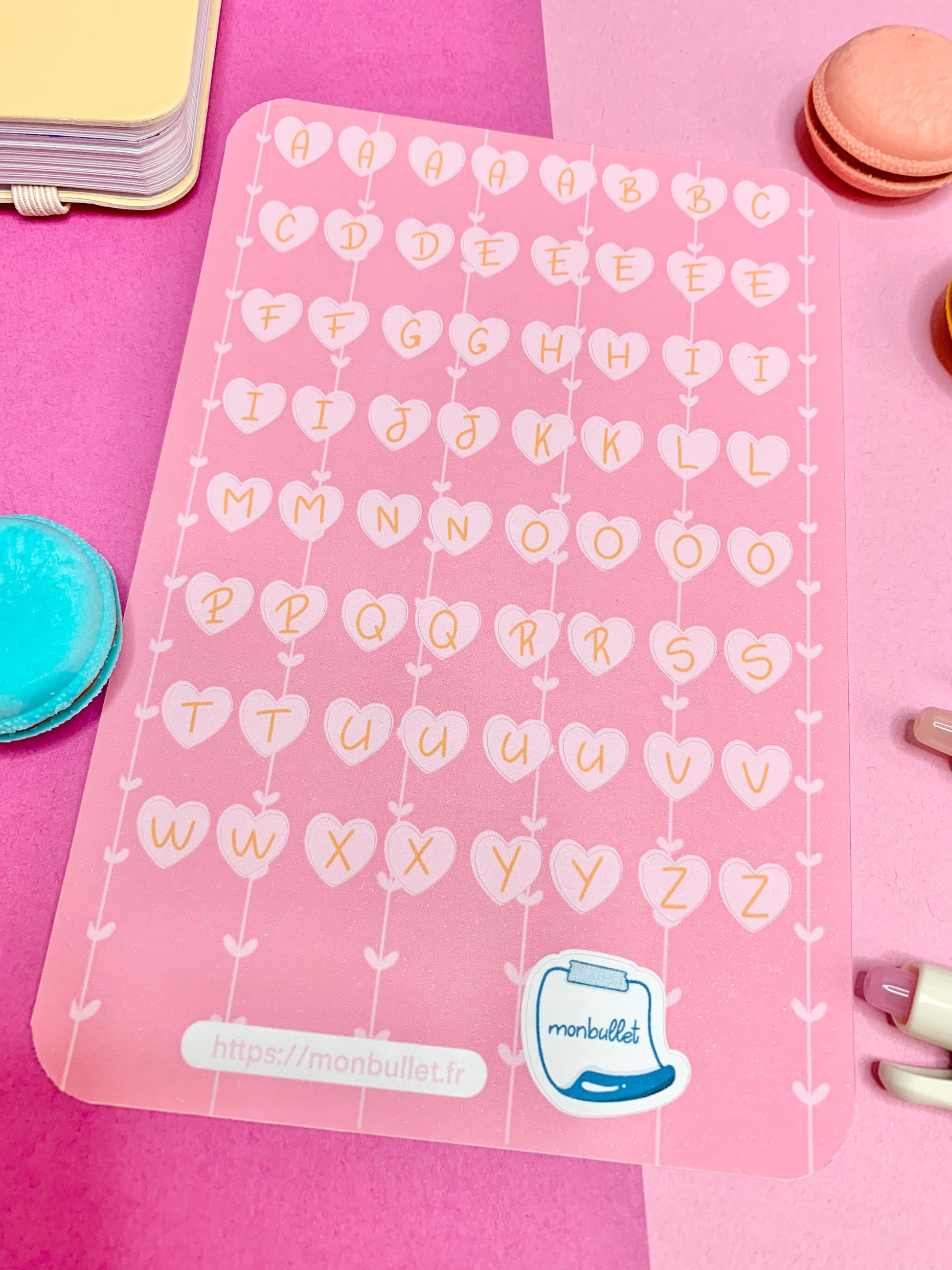 Feuille d’autocollants / stickers mat lettres coeur( bullet ,journaling , déco , scrap , …etc)
