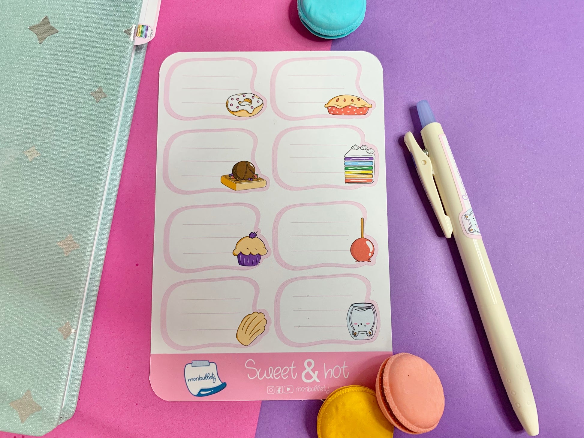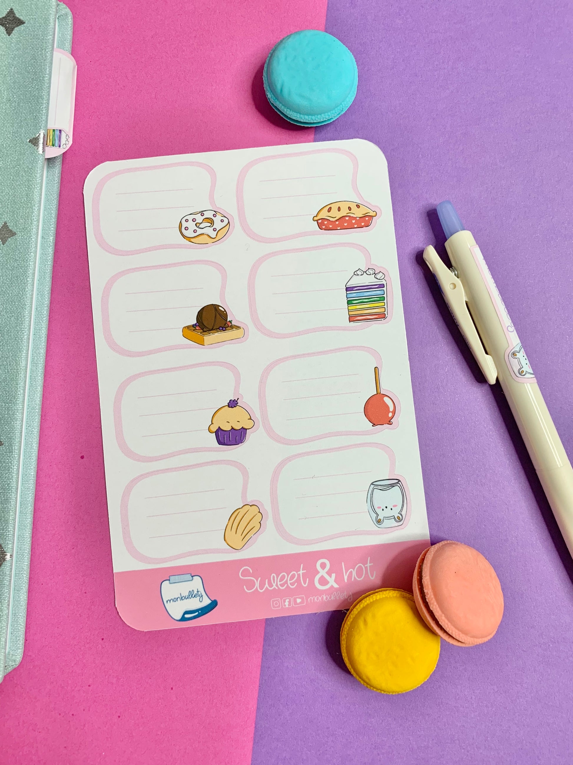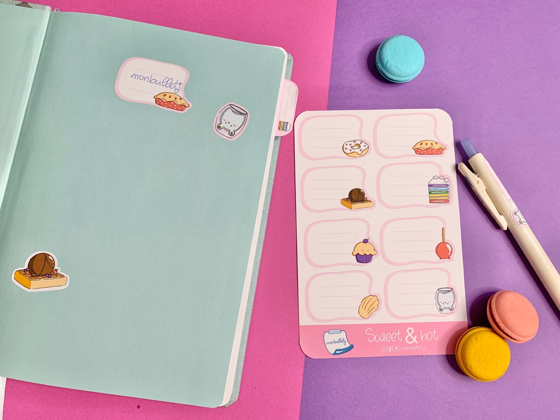 Planche d'autocollants / stickers / étiquettes mat gâteaux / pâtisseries . Idéal pour vos créations bullet journal, projets scrapbooking, vos lettres , cahiers, livres ou encore vos projets créatifs .