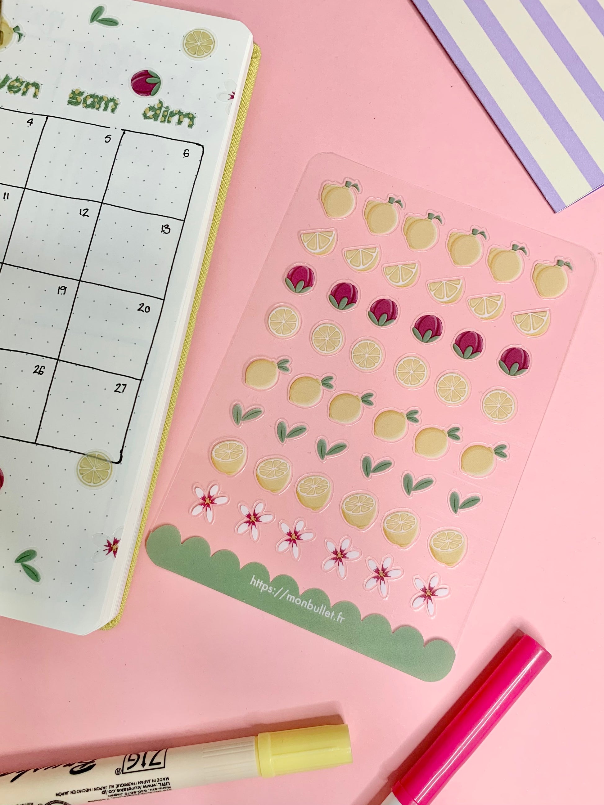 Feuille d’autocollants / stickers mat « Sooo lemony » ( bullet ,journaling , déco , scrap , …etc)